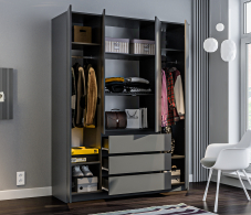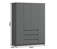 Шкаф 4 дверный с ящиками Леон СБ-3364 (Диамант серый)