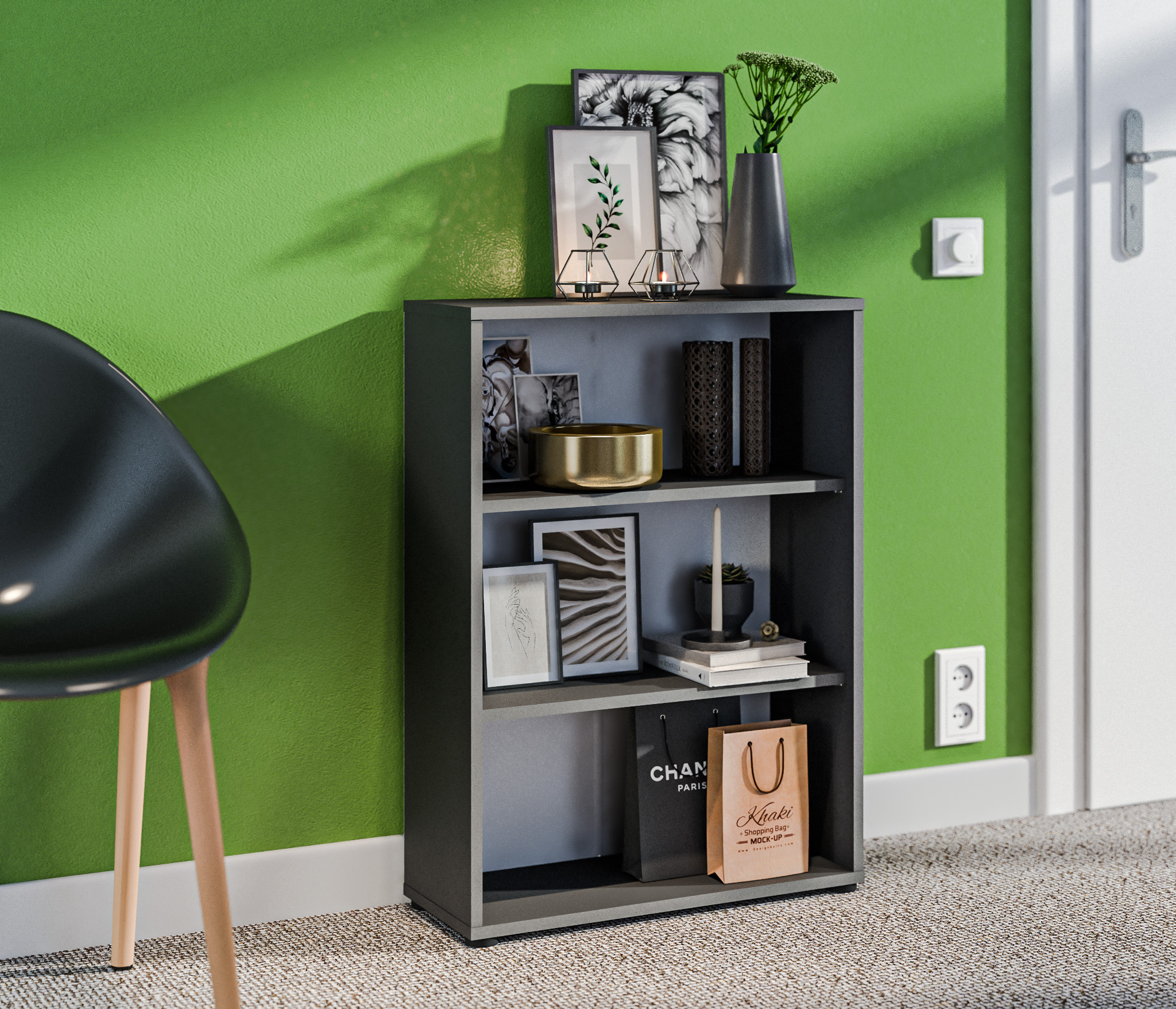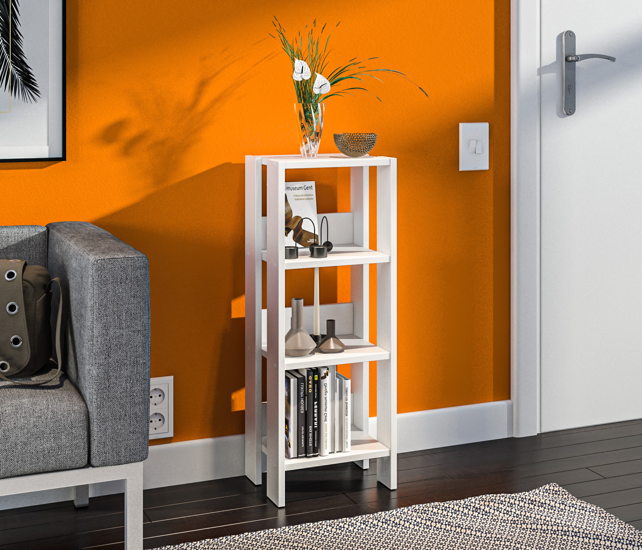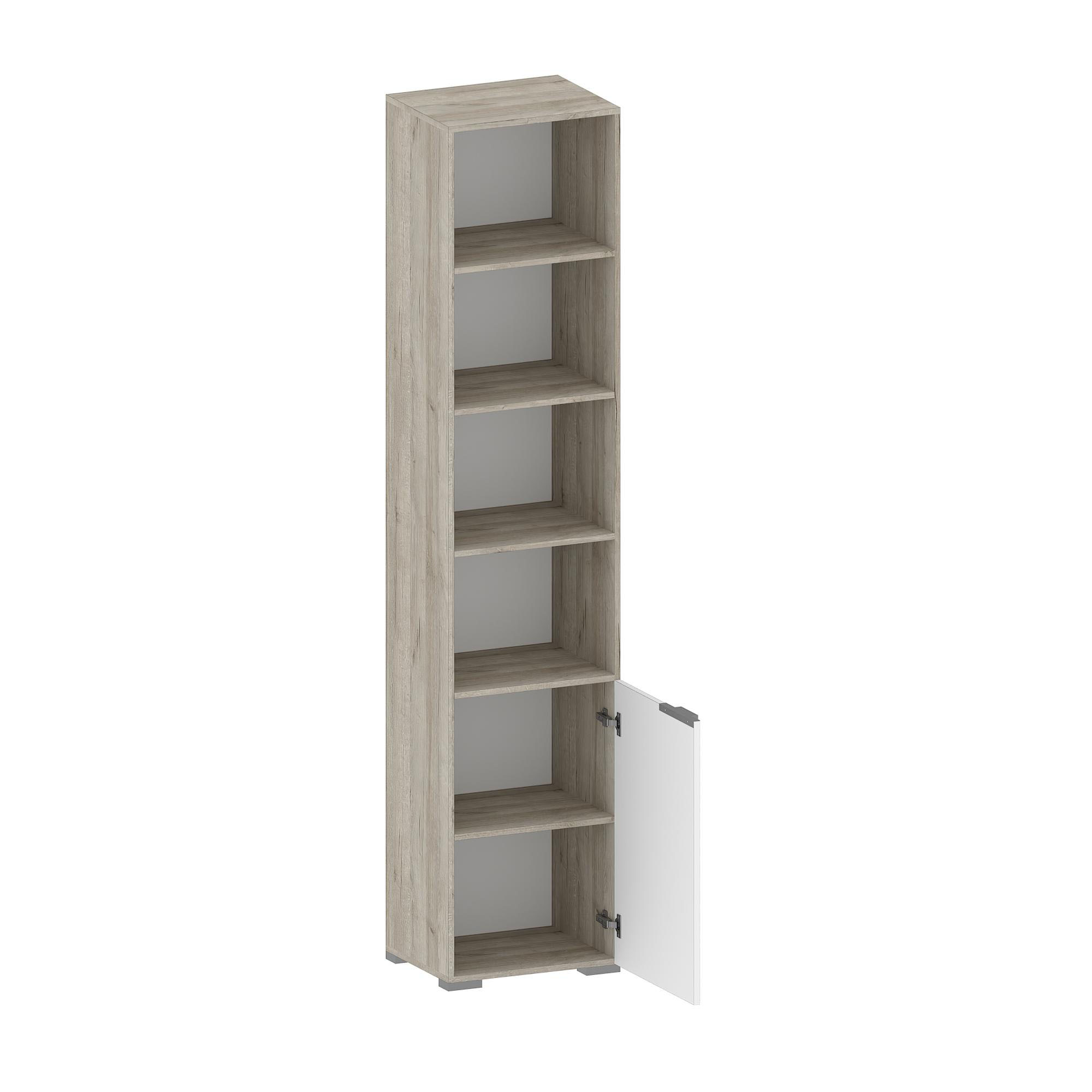 Прямой светлый стеллаж имеет 1 дверь (одну глухую).