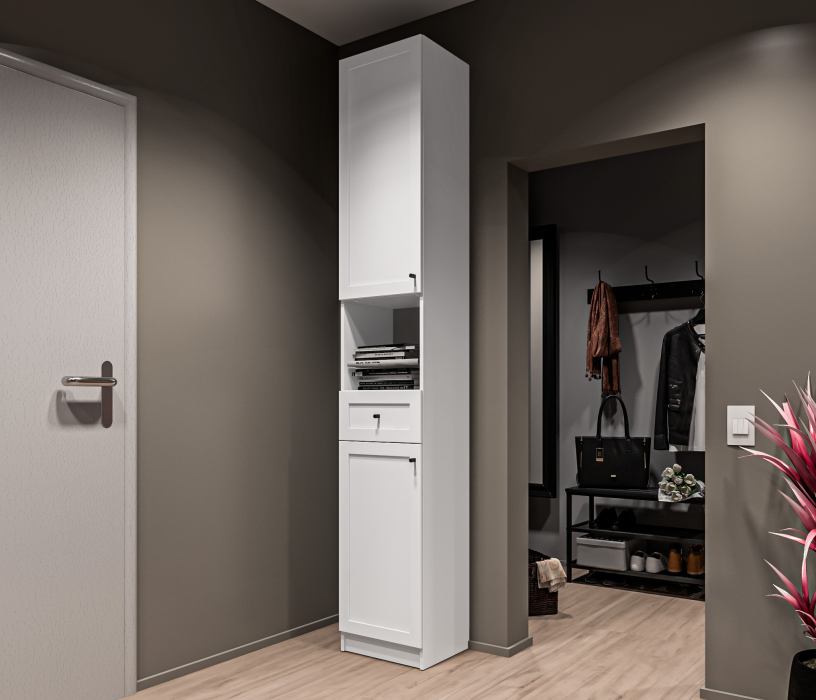 МС Твин предоставляет возможность собрать шкаф или стеллаж по своему вкусу. Вы сами выбираете размеры, цвет ручек: белый или черный, наполнение: ящик или полки. Помимо этого, вы можете решить, оставить фасады глухими или выбрать стеклянные, чтобы добавить прозрачности и легкости в ваш интерьер. Создайте шкаф-стеллаж, который идеально подходит для ваших потребностей и вписывается в ваш стиль.