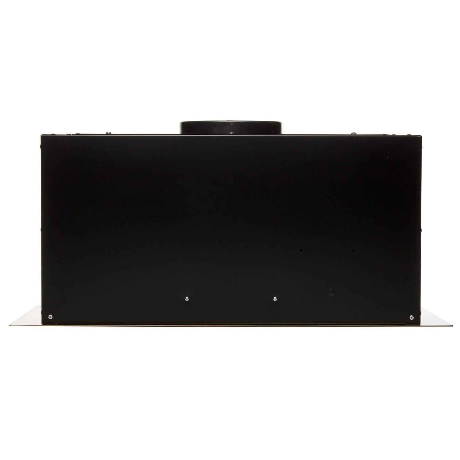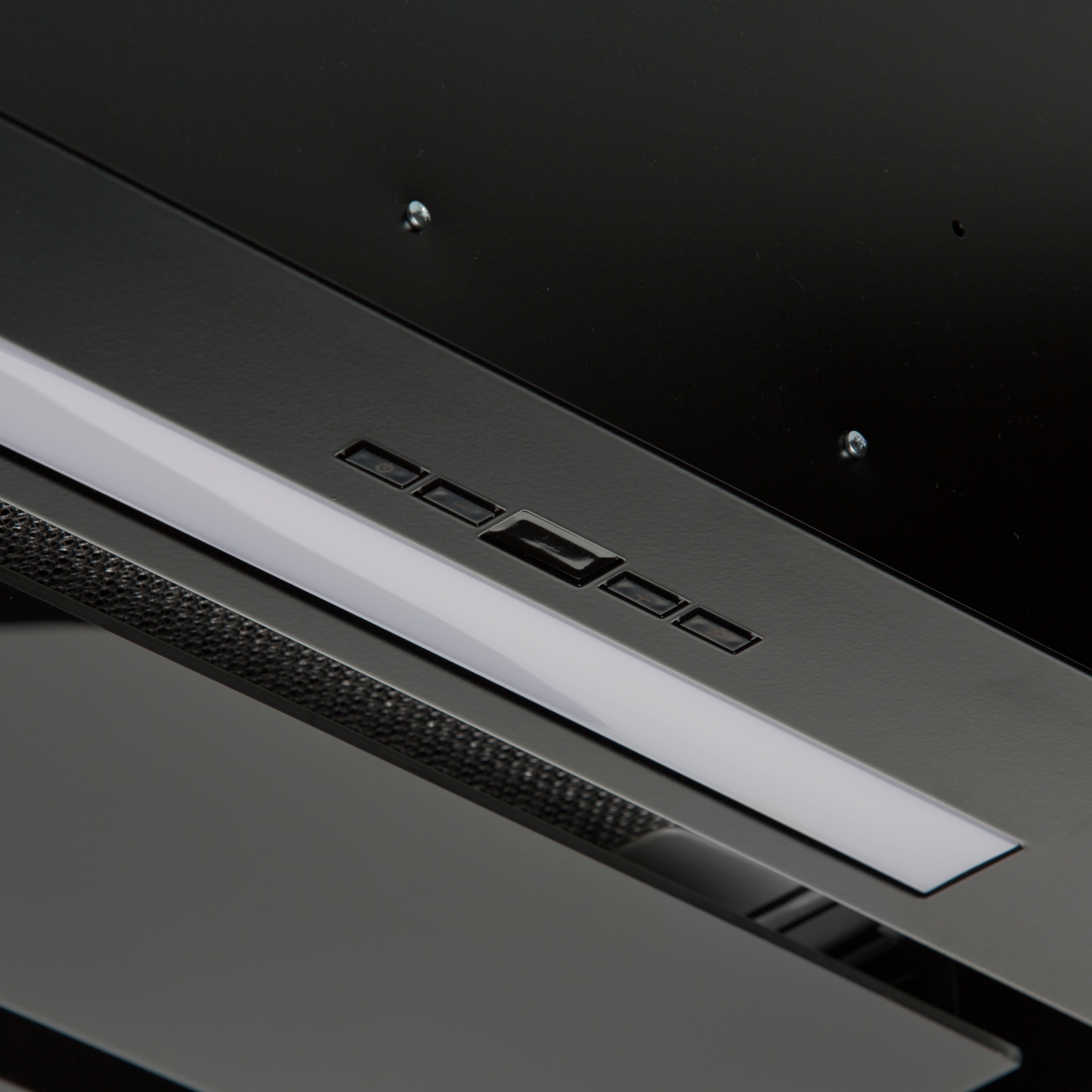 • Полностью встраиваемая вытяжка.Стильное сочетание закаленного стекла и окрашенной стали. Декоративный люк из закаленного стекла скрывает пятислойный алюминиевый, жироулавливающий фильтр с усиленной конструкцией