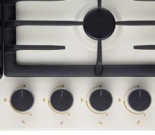 • Тяжелые цельнометаллические ручки управления с отделкой термостойким пластиком в цвете варочной панели