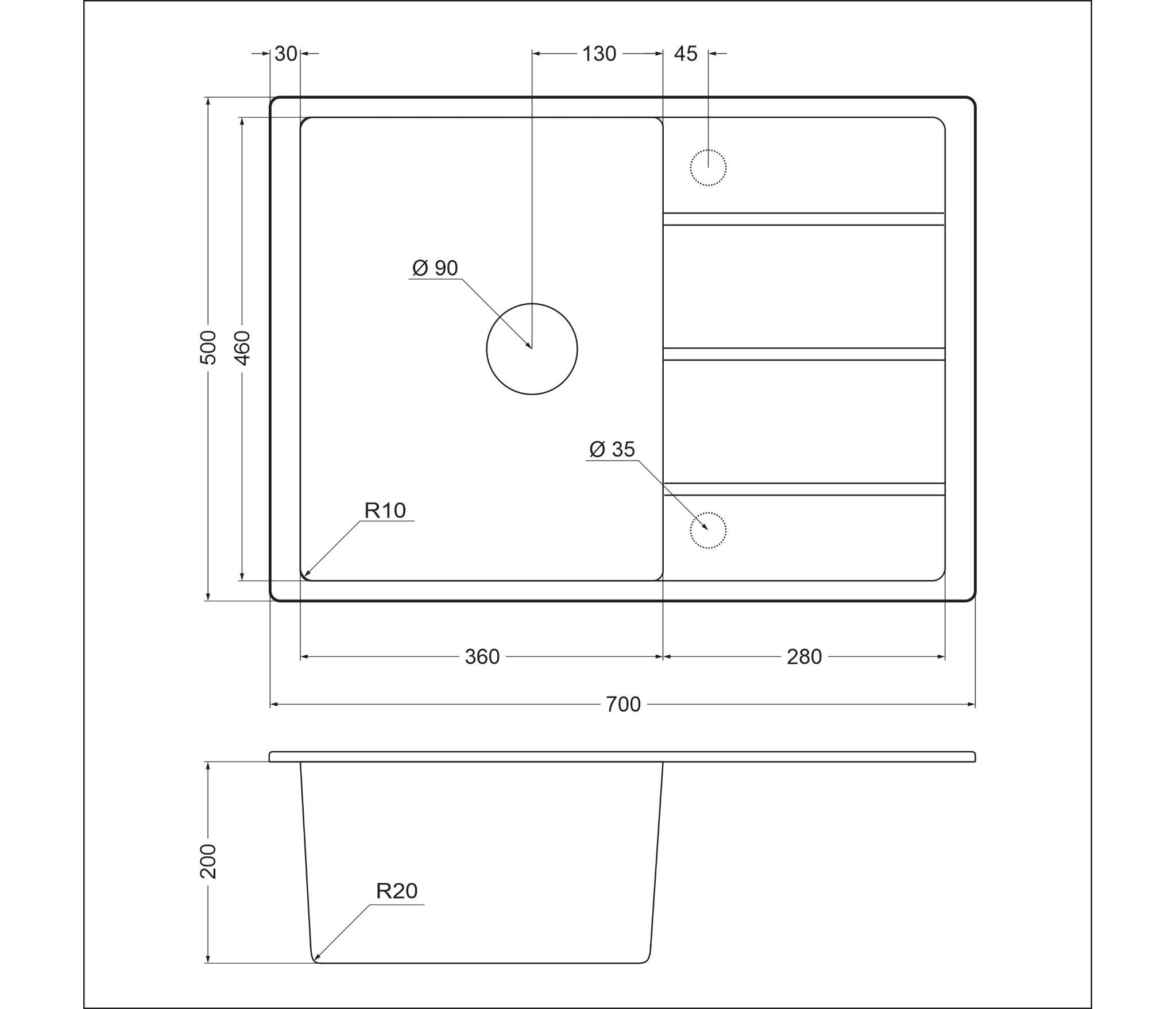 • Размеры мойки: 700 x 500 х 200мм