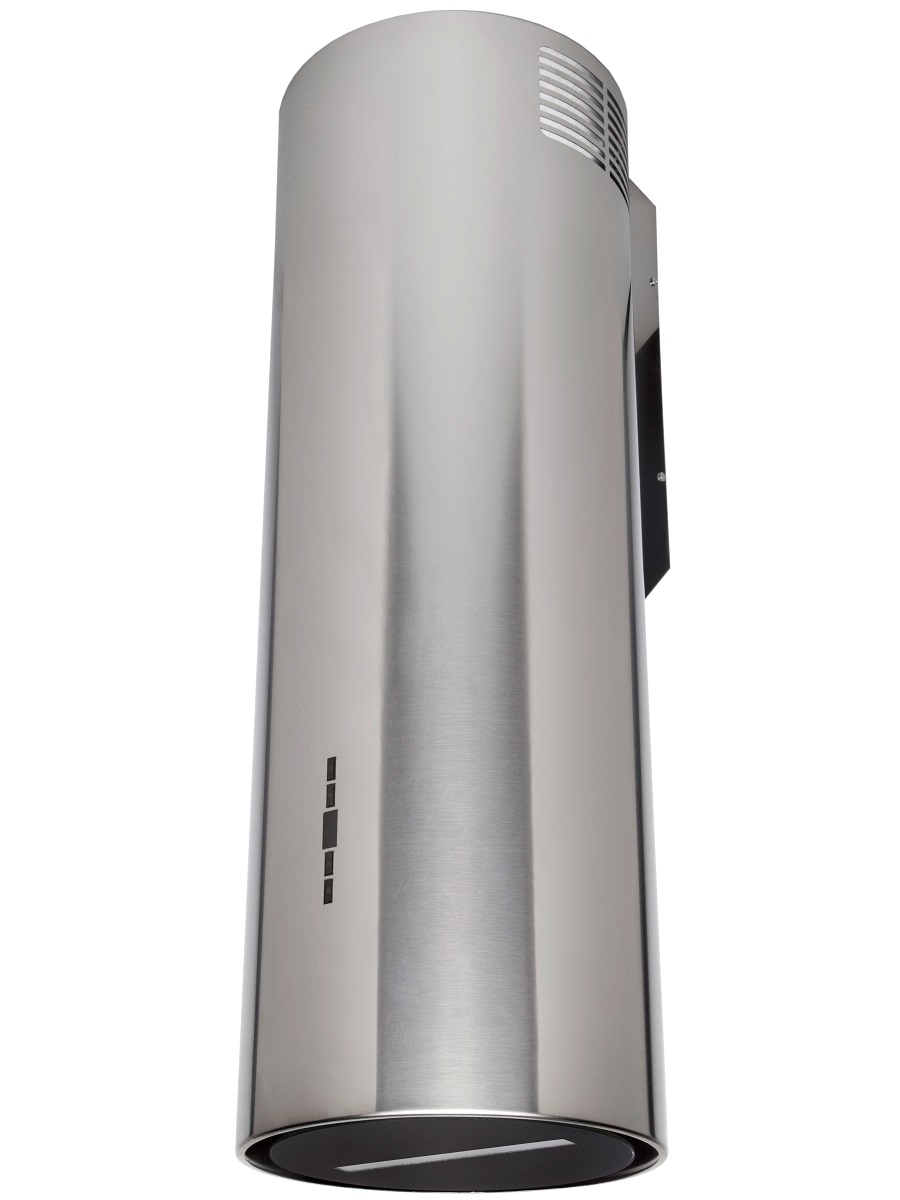 + Вытяжка выполнена в форме цилиндра. Геометрические формы повсеместно используется в современных дизайнерских проектах, они ассоциируются с простотой и лаконичностью, привносят в помещение гармонию и стиль. Стильное сочетание стали и блеска закаленного стекла создают ощущение легкости прочной конструкции. Декоративный стеклянный люк скрывает алюминиевый, жироулавливающий фильтр, придавая завершенность композиции