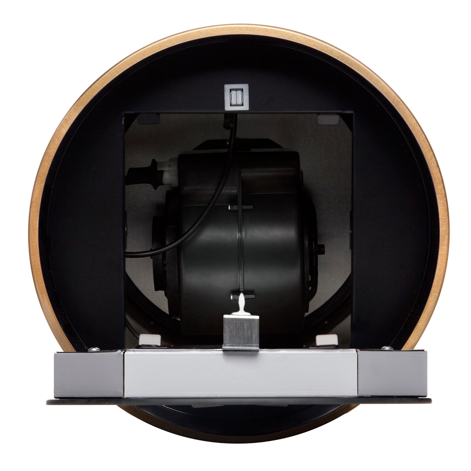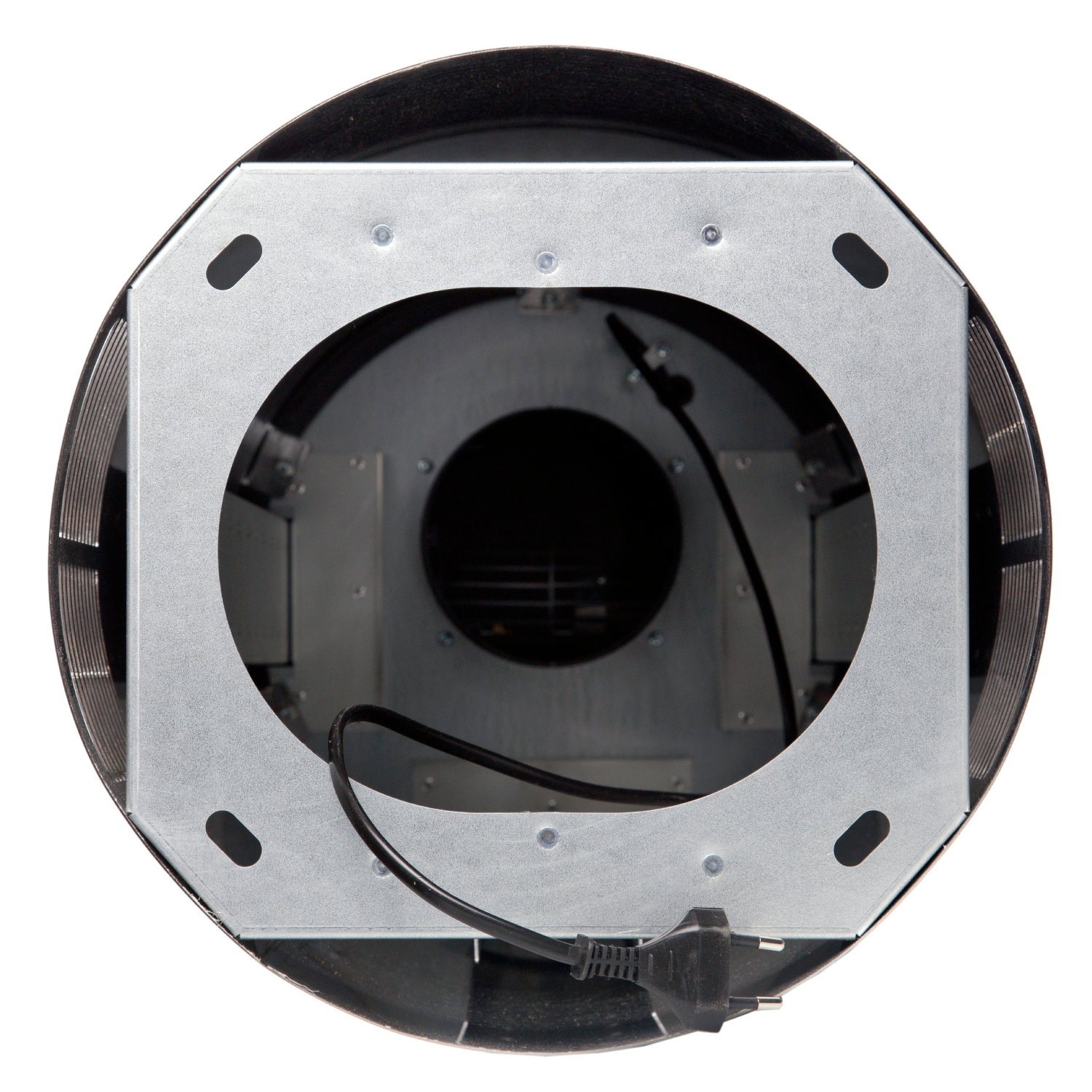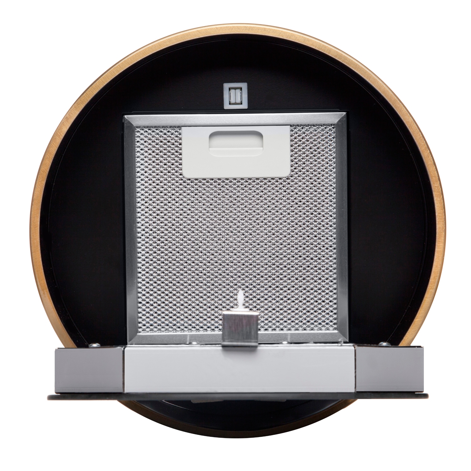 + Вытяжка выполнена в форме цилиндра. Геометрические формы повсеместно используется в современных дизайнерских проектах, они ассоциируются с простотой и лаконичностью, привносят в помещение гармонию и стиль. Стильное сочетание стали и блеска закаленного стекла создают ощущение легкости прочной конструкции. Декоративный стеклянный люк скрывает алюминиевый, жироулавливающий фильтр, придавая завершенность композиции